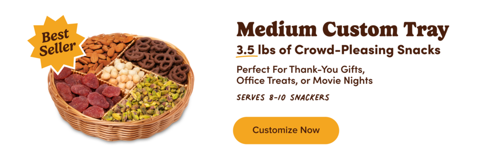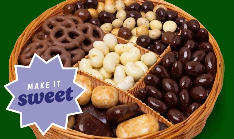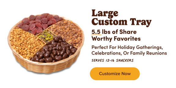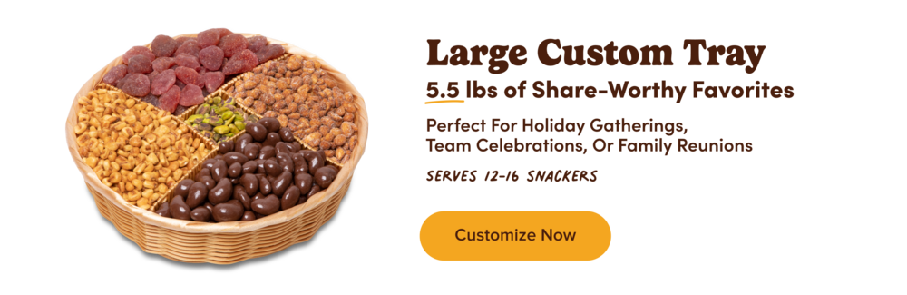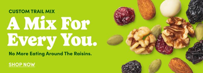 Snack time just got better with the help of dried strawberries, salted roasted cashews, yogurt-covered pretzels, a spicy southern heat mix & our NY espresso mix